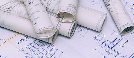 建設物や機械の設計結果を記した「図面」。