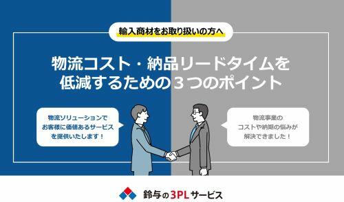 輸入商材のお取り扱いがあり、大都市圏の倉庫を利用しているお客さまで、「物流(保管や輸送)コストの上昇」、「輸入から納品までのリードタイムの長期化」に関する課題・お悩みをお持ちの方向けに、コスト低減・リードタイム短縮・品質向上の解決策をまとめた資料となっています。
