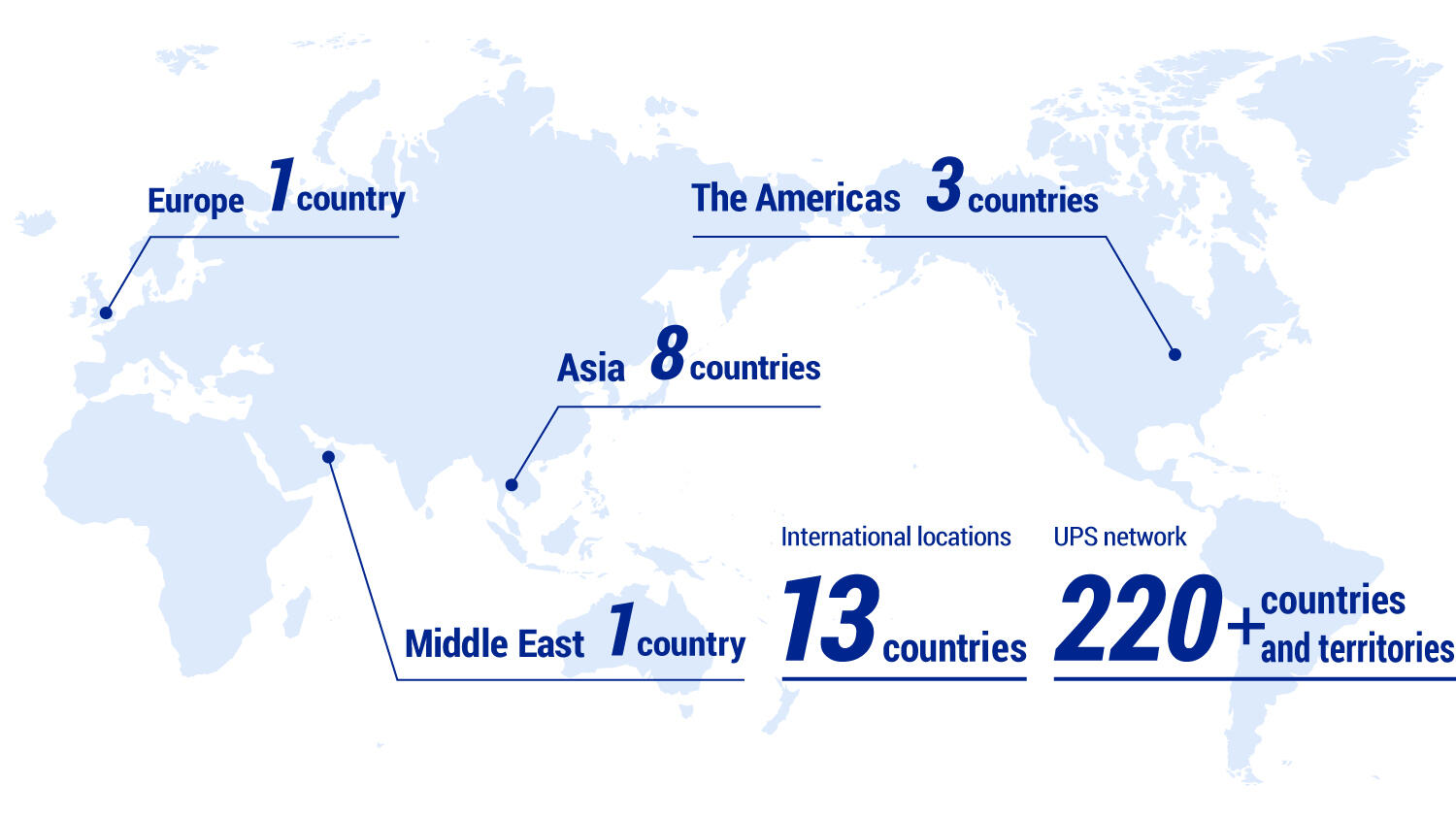 We are also able to arrange international transportation in areas other than those locations, leveraging the network of UPS, a US-based logistics integrator.
