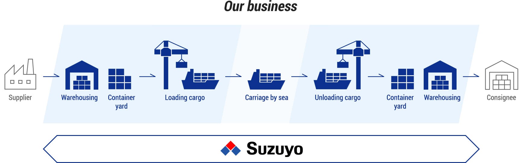 - Operating port and harbor transport businesses at the ports of Shimizu, Omaezaki, Mikawa, Ichihara, Hitachinaka.