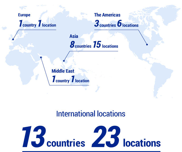 We vigorously support enterprises with expectations to enlarge their businesses in various parts of the world, such as Asia where economic development is remarkable, and the USA which is the Locations of UPS, and Mexico where the automobile business is booming. Suzuyo has local subsidiaries in 13 countries strongly supporting the local expansion of companies from both hardware aspects, such as our warehouses and truck networks, to software aspects such as local staff.