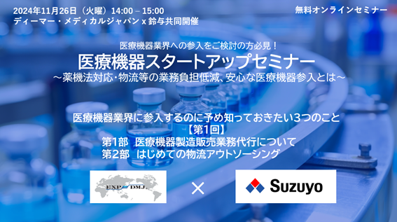 医療機器スタートアップセミナー ~薬機法対応・物流等の業務負担低減、安心な医療機器参入とは~