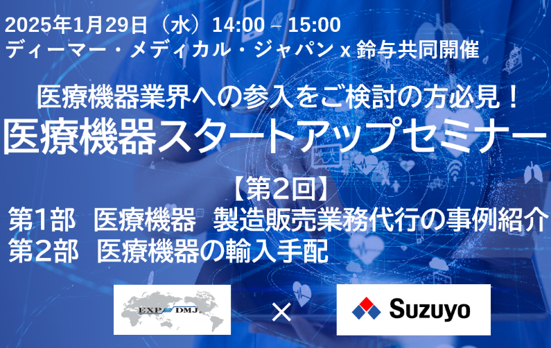医療機器の申請手続きから物流のアウトソーシングを検討している方、医療機器製造販売業の代行を依頼したい方向けにオンラインセミナーを開催します。