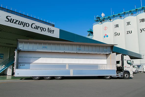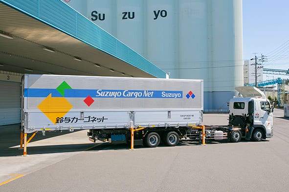 大型トラックからトレーラーへの車両の大型化で積載量向上と輸送台数の削減を達成し、効率的な輸送を実現します。