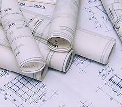 建設物や機械の設計結果を記した「図面」。