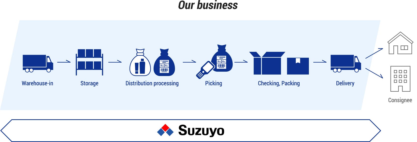 Suzuyo provides high quality logistic services leveraging its on-site capability, problem-solving capability and its thorough nationwide network of about 150 facilities in Japan.