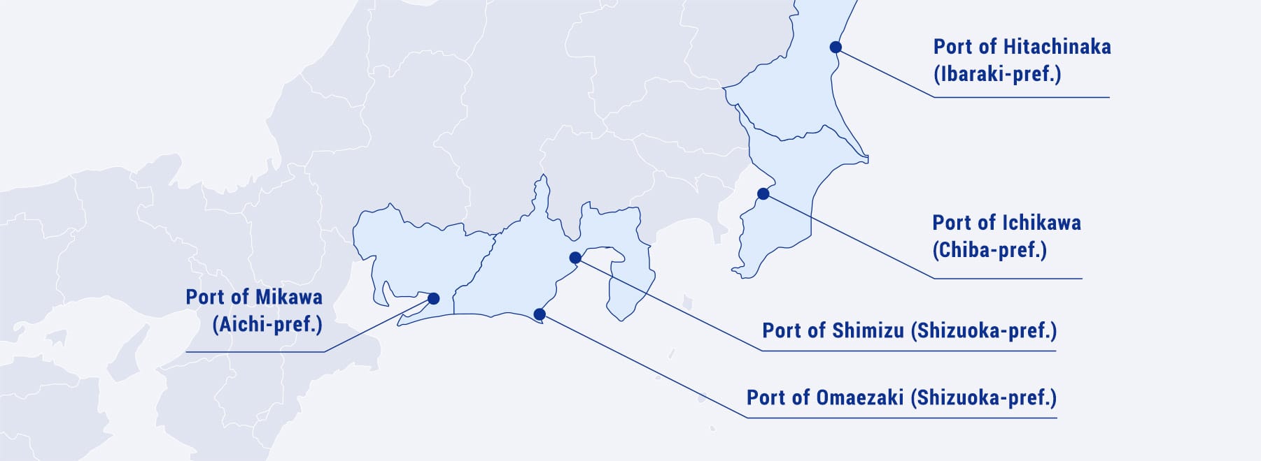 - Operating port and harbor transport businesses at the ports of Shimizu, Omaezaki, Mikawa, Ichihara, Hitachinaka.