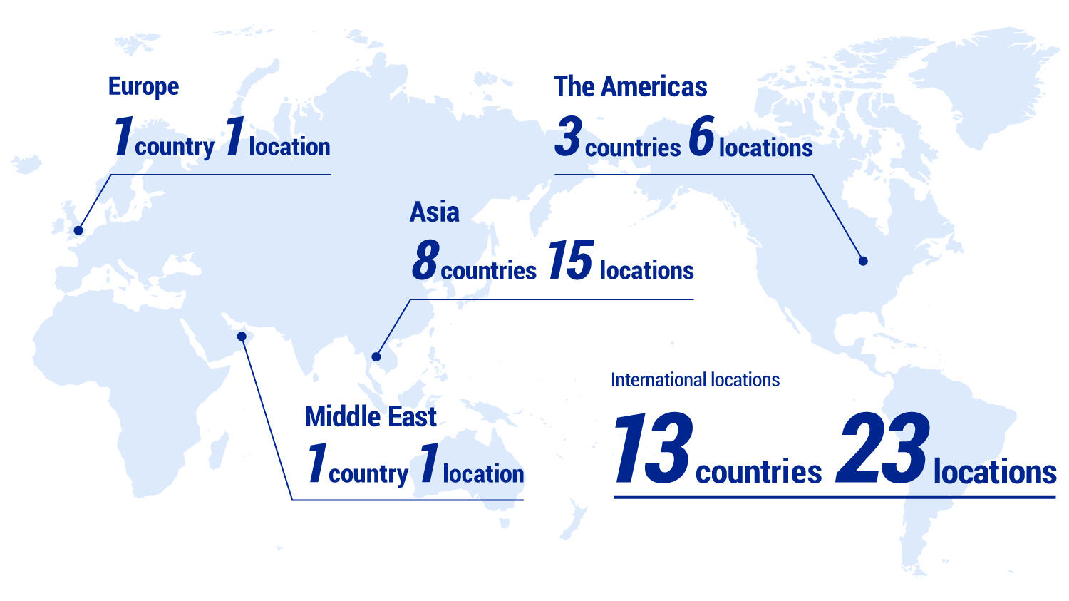 We vigorously support enterprises with expectations to enlarge their businesses in various parts of the world, such as Asia where economic development is remarkable, and the USA which is the Locations of UPS, and Mexico where the automobile business is booming. Suzuyo has local subsidiaries in 13 countries strongly supporting the local expansion of companies from both hardware aspects, such as our warehouses and truck networks, to software aspects such as local staff.