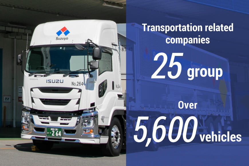 Our transportation business division serves customers with optimum transportation menus, leveraging its carriage effectiveness, realizing operational efficiency and cost reductions. This is done through a unique transportation management system and a transportation network of over 5,600 vehicles of our 25 group transportation related companies, including Suzuyo Auto Transportation and Suzuyo Cargo Net.