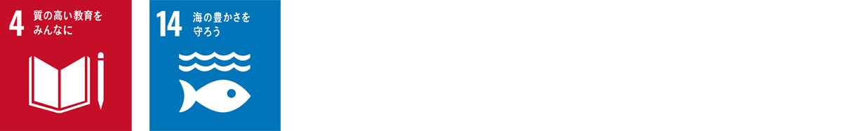 当社は、持続可能な開発目標(SDGs)の達成に向け、積極的に取り組んでいます。本活動を通じ、当社の経営の拠りどころである「共生」の精神のもと、生涯学習の機会を促進(SDG4)するとともに、海洋への関心を持たせる活動(SDG14)に貢献してまいります。