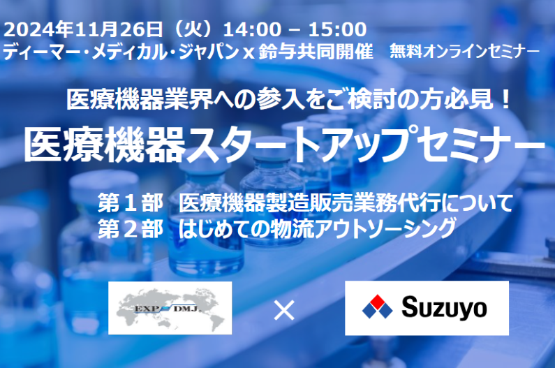 医療機器の申請手続きから物流のアウトソーシングを検討している方、医療機器製造販売業の代行を依頼したい方向けにオンラインセミナーを開催します。