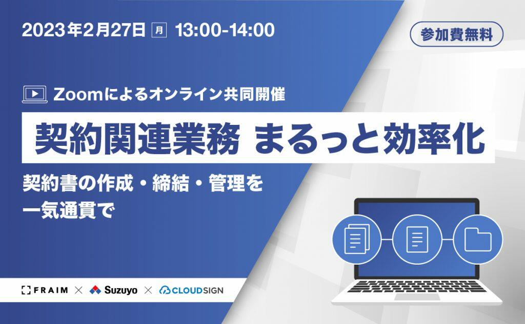 FRAIM株式会社が提供する「LAWGUE」、電子契約サービスの「クラウドサイン」、株式会社Star Max.の契約管理アウトソーシングについてご紹介し、契約業務をまるっと効率...