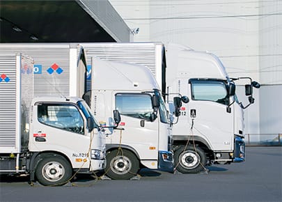 全国43拠点と約2,800台の車両で、お客さまの商品特性や物量に合わせて、小口からトレーラーまで多種多様な輸送に対応しています。また、トレーラーを活用した一括大量輸送で、車両1台あたりの積載量の改善や、輸送台数の削減といった輸送効率化を実現します。