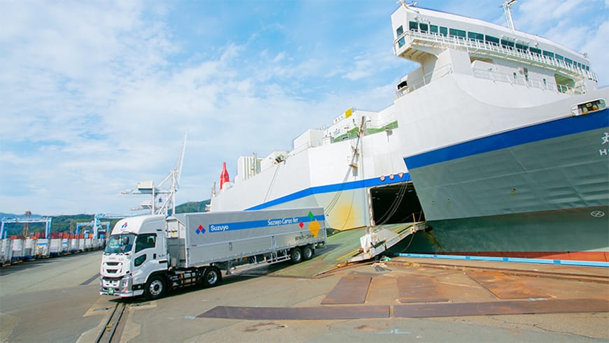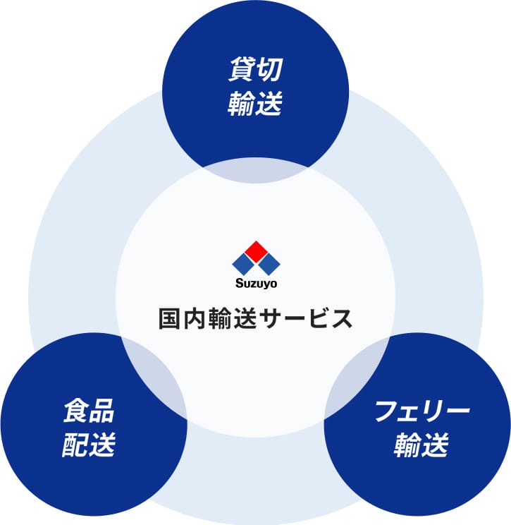 長距離輸送でもコンプライアンスに対応した運行を実現するスイッチ輸送などの「貸切輸送」、全国航路を組み合わせて最適な輸送ルートをご提案する「フェリー輸送サービス」、加工食品専門の配送網を構築し、お客さまの配送を効率化する「食品配送サービス」など、お客さまのご要望に合わせた様々な輸送サービスをご提供しております。